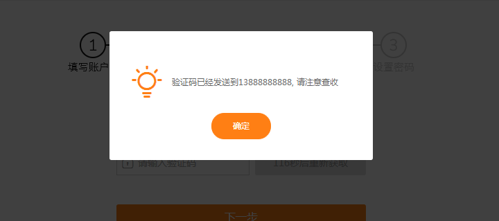 第三步:设置密码。重复输入新密码,并提交。显示”修改密码成功“即完成密码找回。系统会自动跳转到登陆界面,请输入账号与新设置的密码进行登陆。
