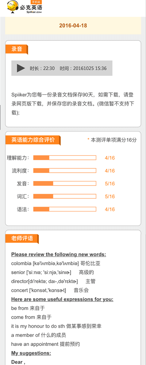 通过登陆必克英语网站/登陆必克英语手机站/绑定必克英语微信账号等方式都可以轻松查看测评报告。