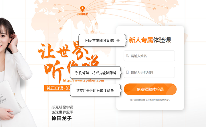 必克英语报名学习第一步:注册会员免费体验课程,找到最适合自己的学习规划,遇见对自己负责的专属老师!